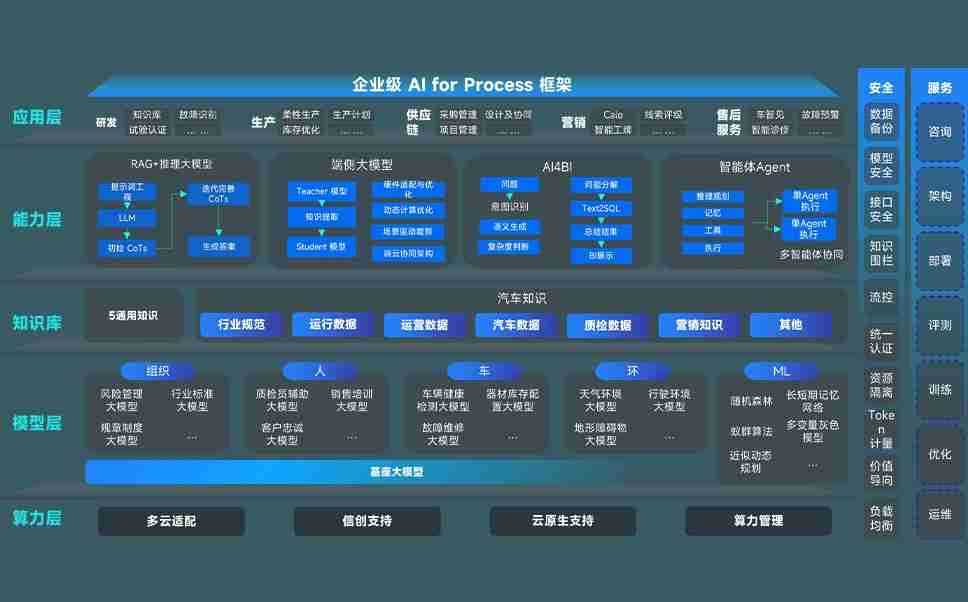 端到端的一站式AI工作空间深度融合了从企业战略规划到日常经营的全流程业务板块,,,定向解决车企内部领域多、、、部门多、、链条长、、场景碎片化等难题,,,支持车企快速构建以AI为核心的生产力写作体系,,,,实现任务执行与AI能力的无缝集成与交互
